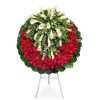 Esta hermosa corona fúnebre, finamente elaborada en Rosas rojas, Cartuchos blancos y demás flores de temporada, es ideal para enviar a casas funerarias y/o residencia.