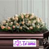 Este hermoso arreglo fúnebre tipo abanico, finamente arreglado con crisantemos y lirios es ideal para enviar a casas funerarias y/o residencias.